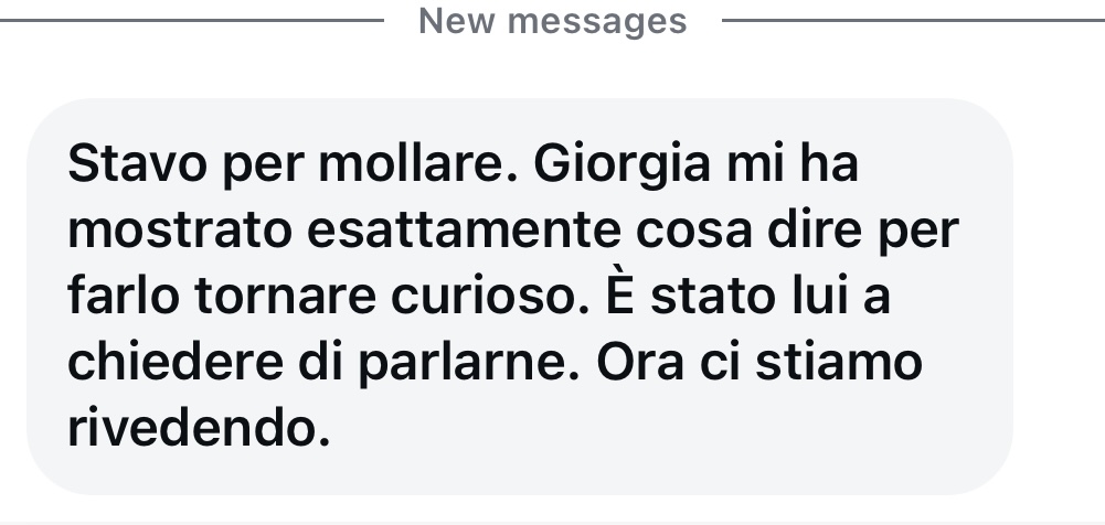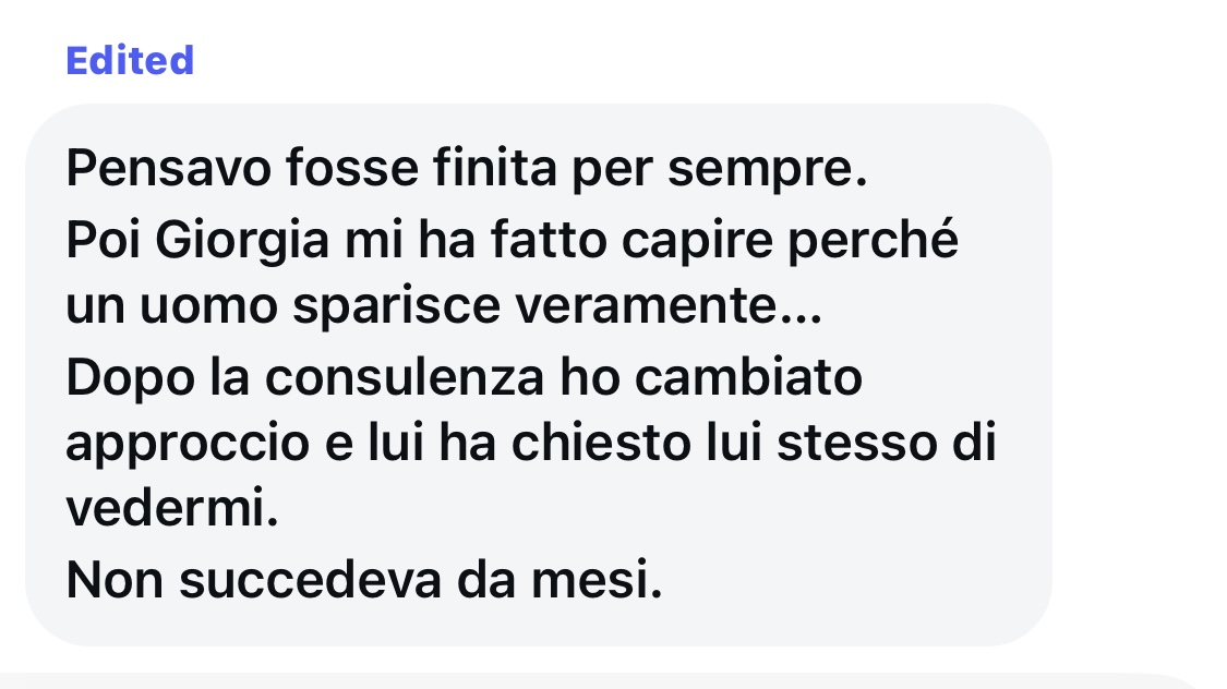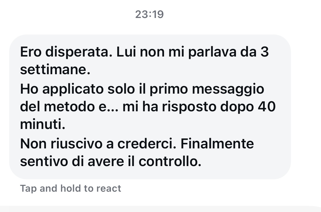Si, perché il lavoro non è sull’altra persona, ma sulla connessione emotiva unica che può esistere solo tra voi due. Il percorso ti aiuta a capire se e come riattivarla correttamente, senza pressioni e senza triangoli tossici.
