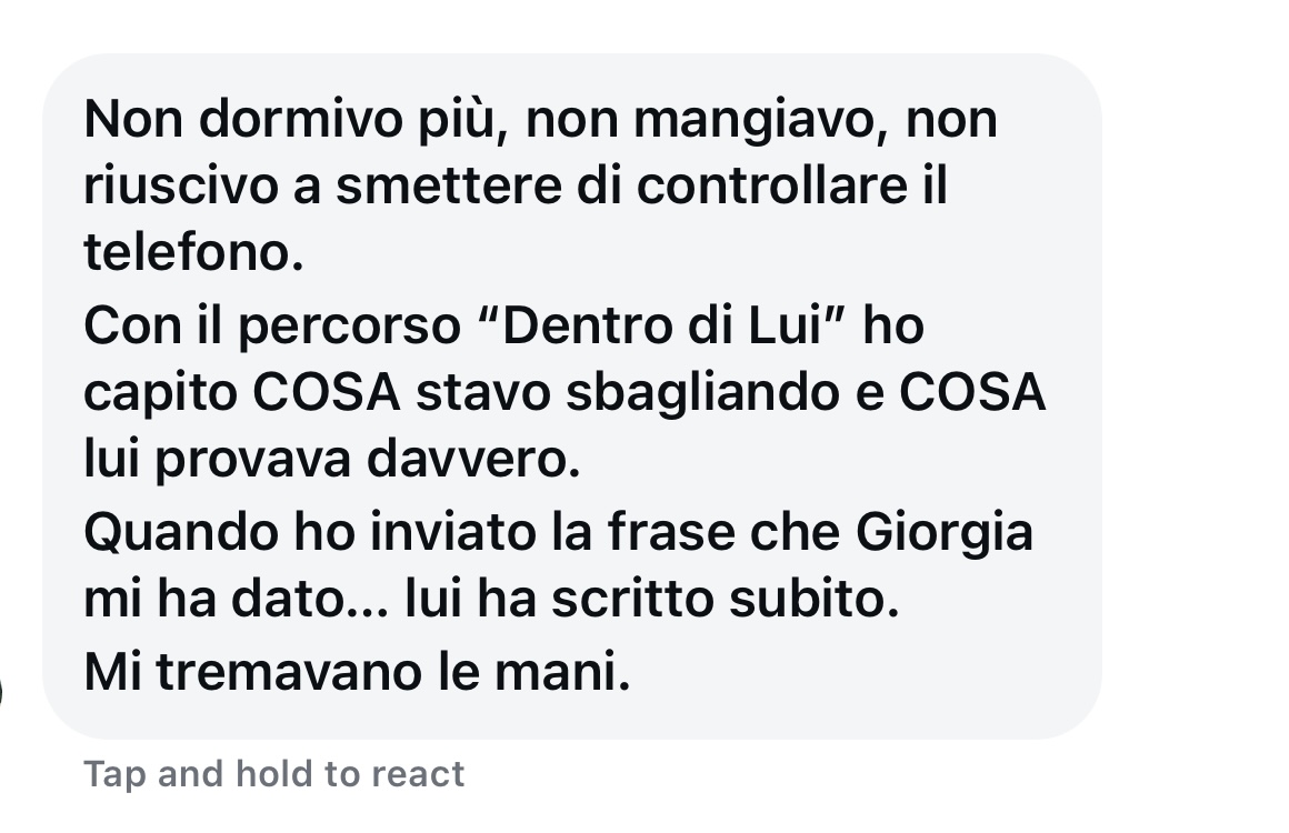 Sì. Il percorso ti aiuta a ritrovare il tuo valore, centrarti emotivamente e capire cosa è davvero giusto per te con lui o senza.
